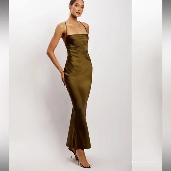 Meshki Dresses Meshki Sydney Straight Neck Slip Maxi Dress Khaki Poshmark